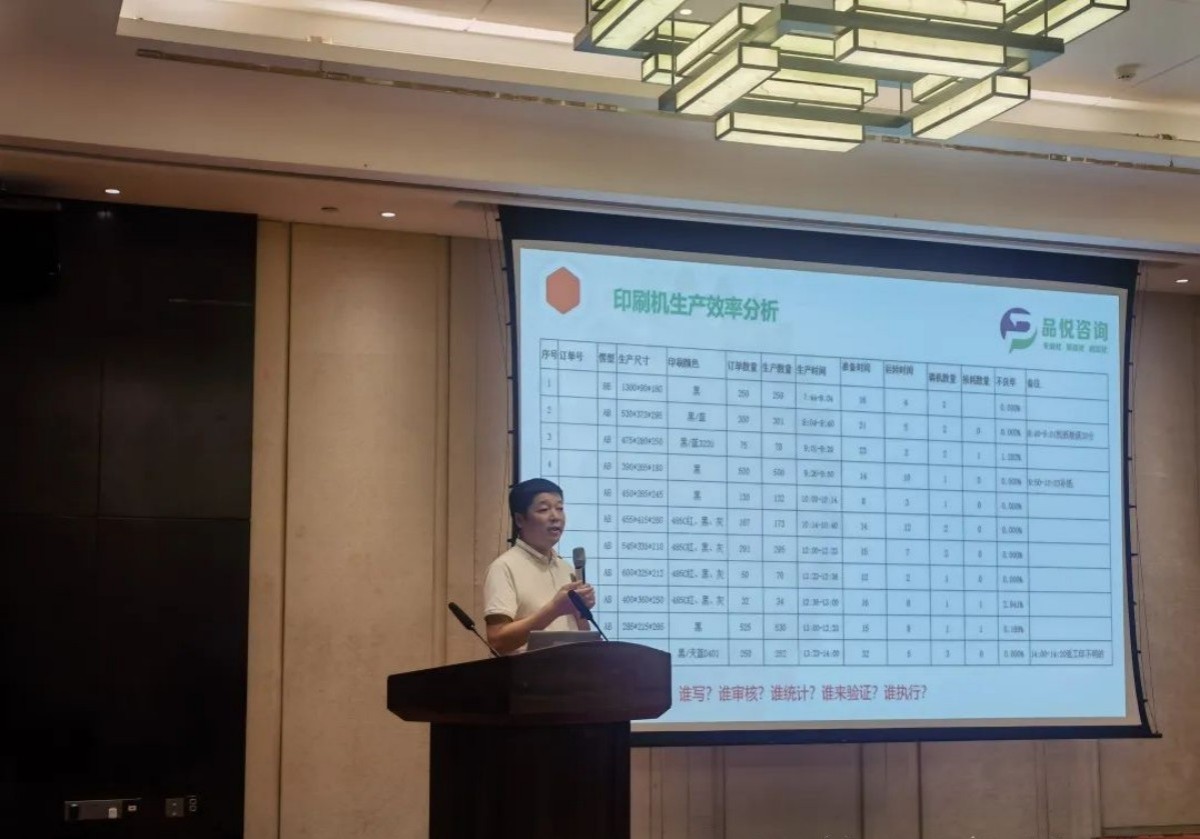 隨后,王劍峰老師分享了紙箱數據管理應用方面的寶貴經驗,從紙箱生產效率數據分析到生產成本分析,再到生產標準化數據應用以及品質數據分析等,全方位地為參會企業提供了極具價值的指導。